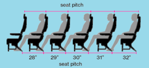 Seat pitch is the distance between a point on one seat and the exact same point on the seat in front of it. It’s measured in inches and is often used as a rough indicator of legroom.