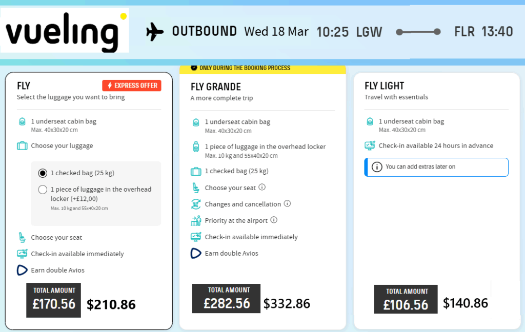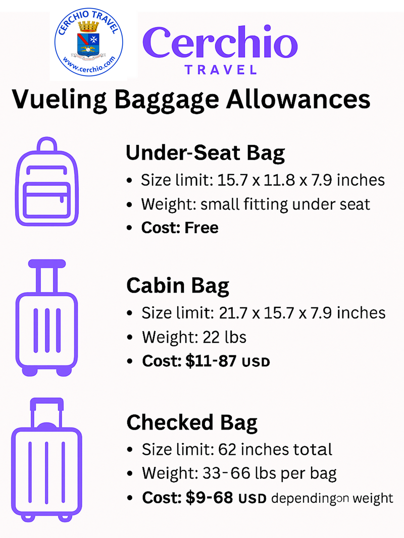 📝 Vueling Luggage Rules & Costs in USD