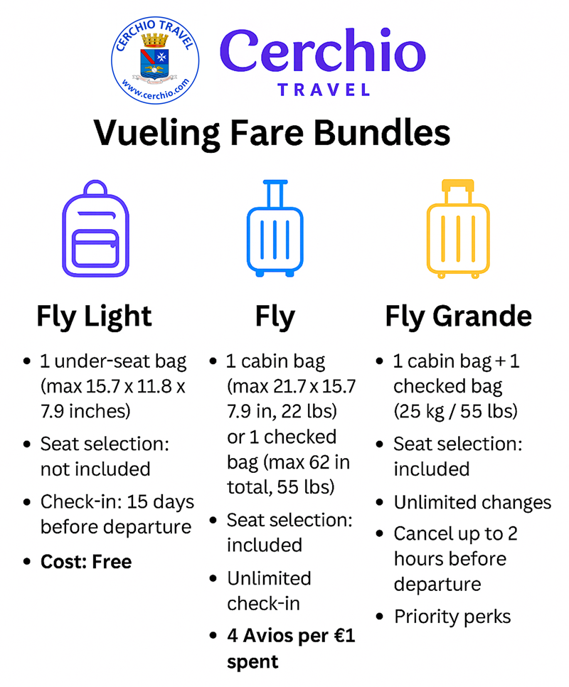 Flying Vueling is a smart budget choice across Europe, but luggage rules can be tricky. Here’s the complete guide so you know exactly what’s free, what costs extra, and how to save money. Note: costs can change, so double check for current pricing.
